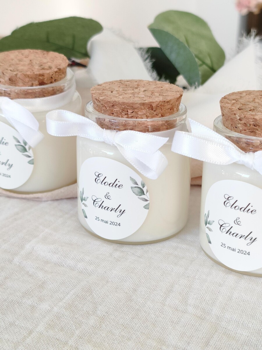 Faites plaisir à vos invités avec une bougie personnalisée, un souvenir unique de votre mariage qui ajoutera une touche chaleureuse à votre célébration.